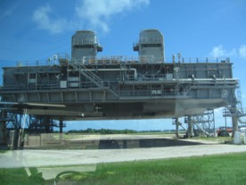 | This is the crawler that goes like one mile per hour bringing the space shuttle from the "garage" to the launch pad. |